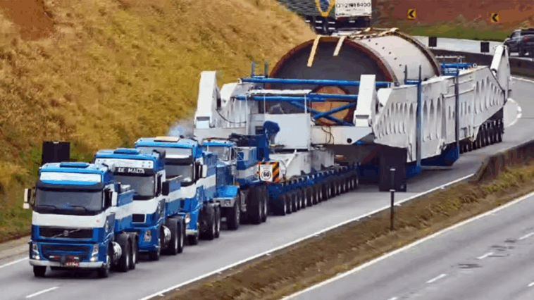 Com 44 eixos e 264 pneus, o veículo transporta um sistema de moagem industrial com destino à fábrica da Votorantim Cimentos, em Edealina/GO. A viagem, iniciada em 09/10, partindo de Arujá/SP, deve percorrer cerca de 1,2 mil quilômetros e durar mais de dois meses. Devido às dimensões, equivalentes à altura de um prédio de 30 andares, o comboio trafega apenas durante o dia, a uma média de 30 km/h, e com paradas programadas.